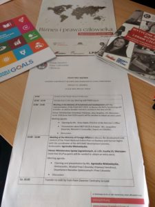 Zorganizowana przez PIHRB wizyta studyjna miała na celu umożliwienie ekspertom ukraińskim zapoznanie się z polskimi doświadczeniami i praktykami w obszarze praw człowieka i biznesu, w tym z procesem prac nad wypracowaniem a aktualnie implementacją Krajowego Planu Działań na rzecz wdrażania Wytycznych ONZ dot. biznesu i praw człowieka. W planie wizyty znalazły się zarówno spotkanie z ekspertami naszego instytutu jak również spotkania z przedstawicielami Ministerstwa Spraw Zagranicznych i Ministerstwa Innowacji i Rozwoju, jak również osobami odpowiedzialnymi za prowadzenie KPK OECD w Polsce.